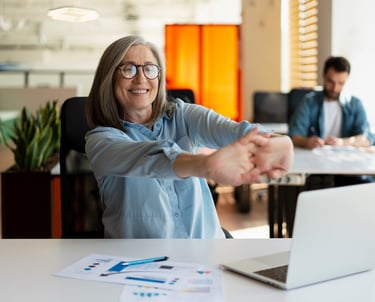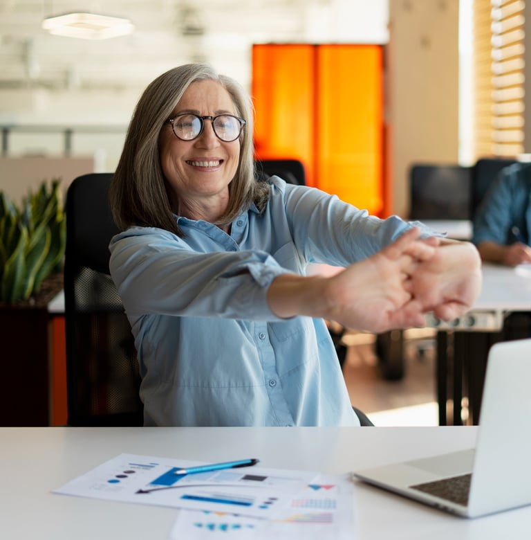 Este servicio está diseñado para trabajadores/as en modalidad remota. La sesión es de 30 minutos, de los cuales 15–20 minutos se destinan a actividades guiadas que permiten desconectar de las tareas, activar el cuerpo y mejorar la concentración. Todo esto con el fin de prevenir lesiones y reducir el estrés.